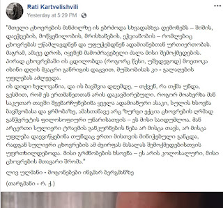 - ე.ი. ადამიანი ყოველთვის ადამიანი რჩება? მე კი ვფიქრობდი, რომ თქვენი მსოფლხედვა სხვა არაფერია, თუ არა რეინკარნაციის რწმენა. და როგორ უნდა მოხდეს პეპელად, ბაბუაწვერად ან ძაღლად გადაგვარება?