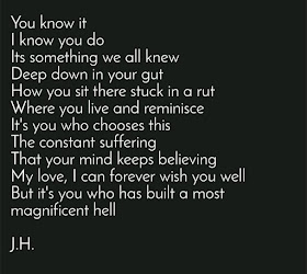 ავადმყოფები და ღარიბები უფრო უკეთეს მდგომარეობაში არიან დამერწმუნე. ისინი ყოველდღე წყევლიან ამ უბადრუკ სამყაროს, რომელიც თავად შექმნეს. მდიდრები და ჯანმრთელები უფრო ცუდ დღეში არიან. ისინი ვერ ხედავენ ჭეშმარიტებას, რადგან ოქროსა და ვერცხლის სიკაშკაშე უბრმავებს თვალებს. ენით აღუწერელი კმაყოფილებით დააბიჯებენ და ისრულებენ სურვილებს, რომლებიც მათ არ ეკუთვნით, მიისწრაფვიან მიზნებისკენ, რომლებიც მათი არ არის. თუმცა შინაგანად ყველა მათგანი სიკვდილს ნატრობს, ყველა იტანჯება... მათ არ იციან რისთვის ცხოვრობენ. მათ არ იციან რა უნდათ სინამდვილეში.